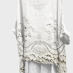 Tunika Šapti Vrbe isijava harmoniju i prirodnu eleganciju, s dizajnom koji podsjeća na mekoću i pokret grana vrbe na vjetru. Njezina lagana silueta nježno obavija tijelo, dok zemljane nijanse pojačavaju osjećaj mira i nenametljive sofisticiranosti.