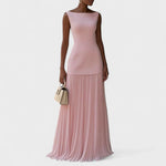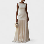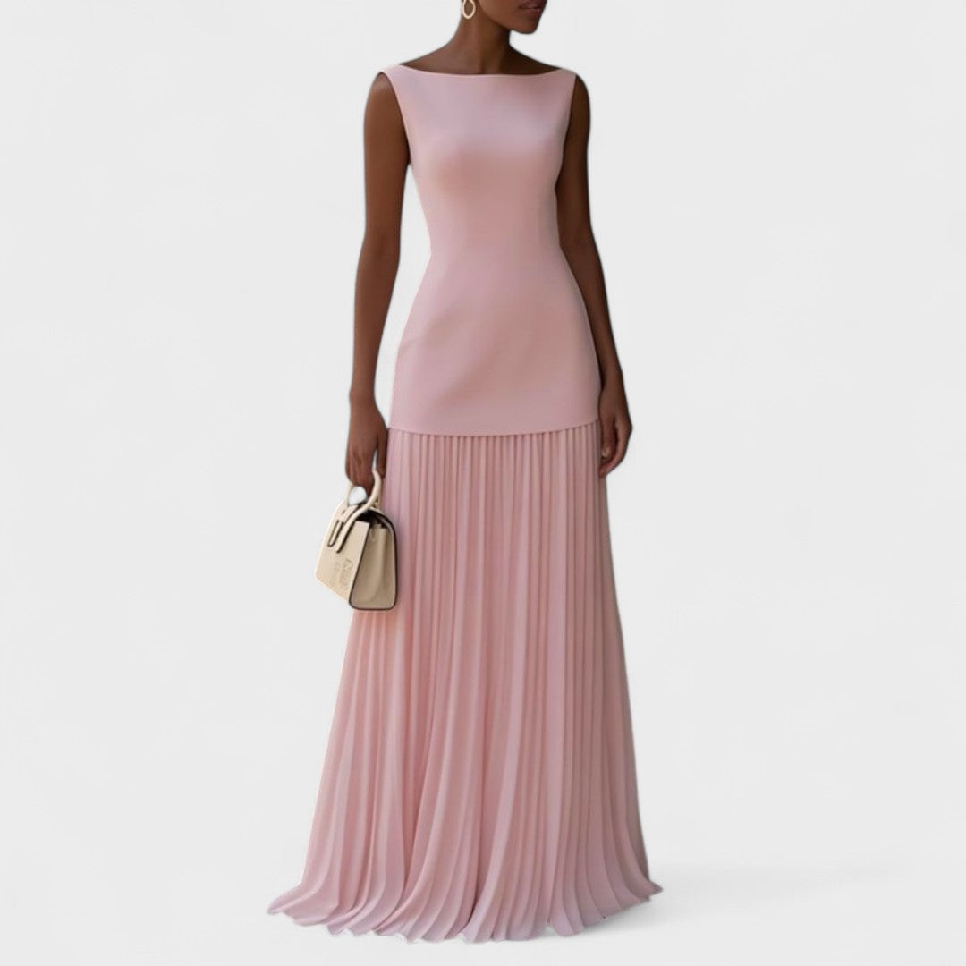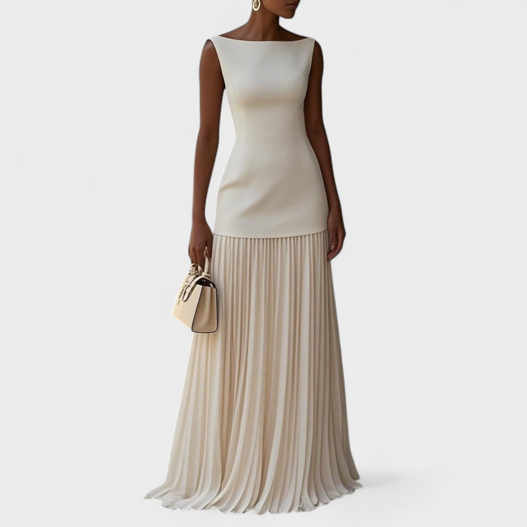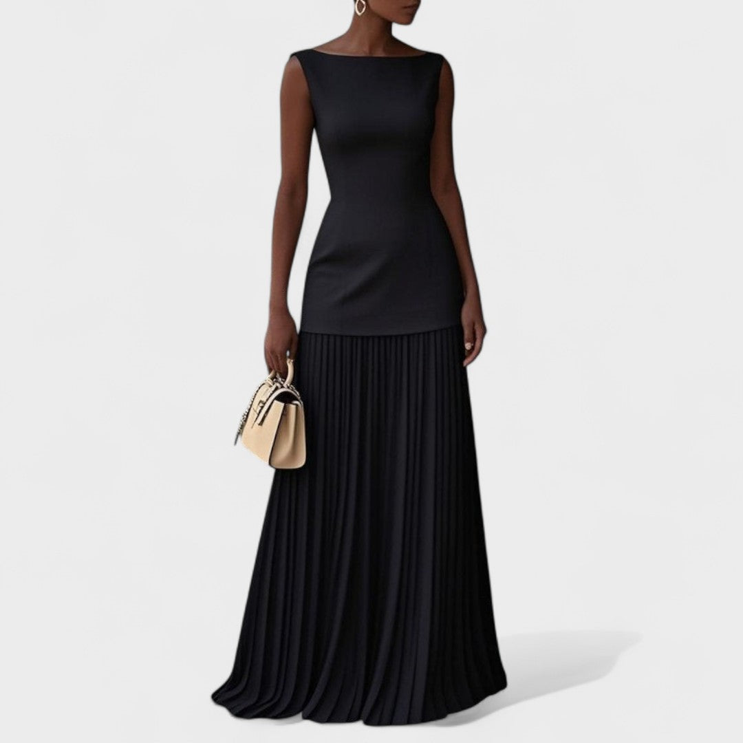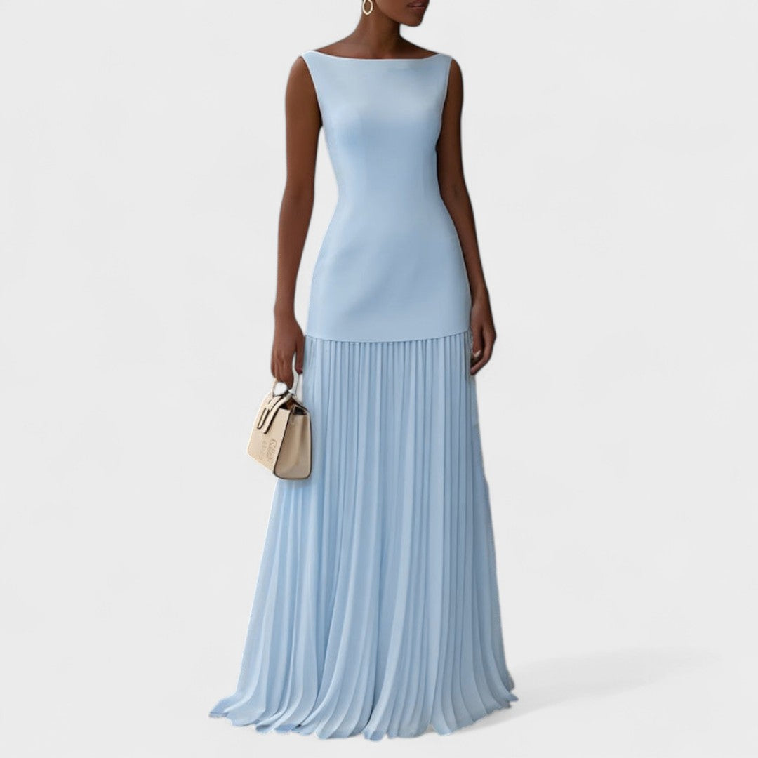 Ova luksuzna haljina spaja sofisticiran dizajn s besprijekornom siluetom koja naglašava ženstvenost i gracioznost. Gornji dio profinjeno prati liniju tijela, dok donji dio s raskošnim naborima stvara dojam lakoće i fluidnog pokreta. Idealna je za gala događaje, svečane večere ili posebne prilike kada želite zasjati bez kompromisa.