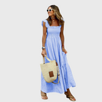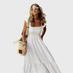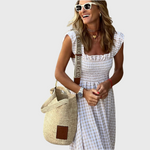 Ljetna maxi haljina na kvadratiće sa smock gornjim dijelom