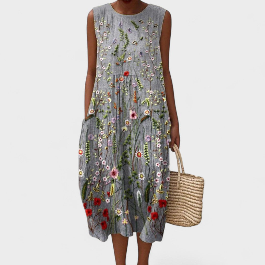 Ova lagana i prozračna haljina savršeno kombinira stil i praktičnost, dajući vam slobodu kretanja i sofisticiran izgled u svim prigodama. Njezin opušteni kroj i cvjetni uzorak čine je idealnim izborom za plažu, šetnju gradom ili ljetne susrete.