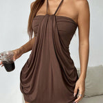 Čokoladna Mini Haljina Svezana Oko Vrata