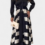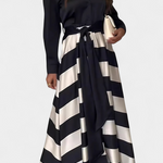 • Fluidna suknja s horizontalnim prugama koja stvara vizualnu dinamiku