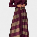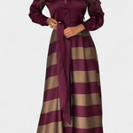 Grafička, sofisticirana i moderna, haljina Cvita reinventira siluetu košulje s uredničkim zaokretom. Odvažne pruge, široka suknja i pojas u istoj boji čine je upečatljivim komadom koji će s elegancijom istaknuti u svakoj prilici.