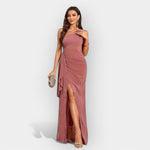 Elegantna i moderna, ova haljina kombinira asimetrični kroj s fluidnim materijalom za sofisticiran i ženstven izgled. Idealna za posebne prigode i blistave večeri.