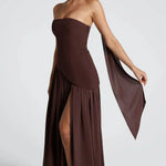 Ova haljina bez naramenica isijava bezvremensku eleganciju i ženstvenost. Idealna opcija za večernje izlaske i službene prigode.