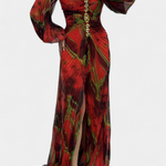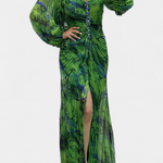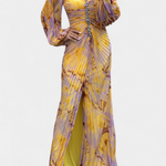 Leona Maxi Haljina s Plisiranjem, Dugim Rukavima i Vibrantnim Uzorkom