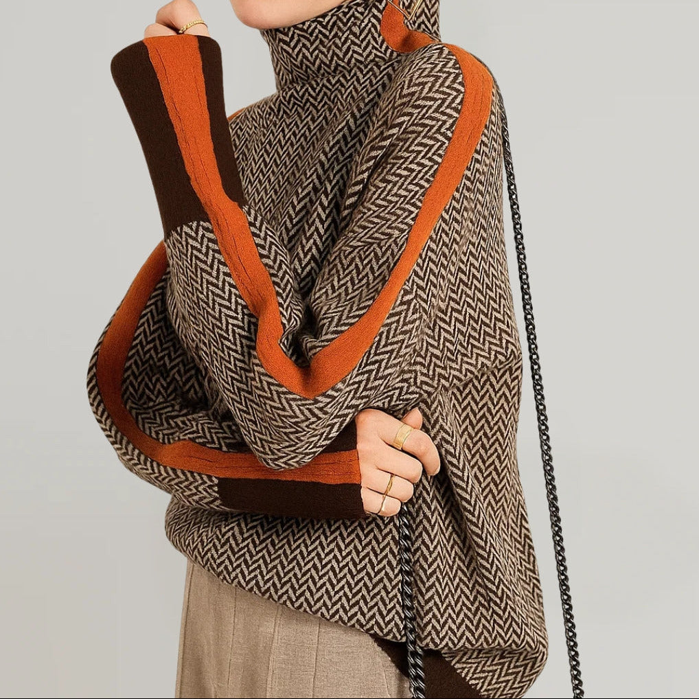 Pulover Ana savršeno kombinira moderan dizajn i udobnost. Njegov opušteni kroj i visoki ovratnik pružaju osjećaj topline i lakoće, dok kontrastni detalji uz rukave daju suptilan, ali izražajan karakter. Izrađen od mekog, prozračnog materijala, Ana je idealna za svakodnevne trenutke elegancije – od poslovnih dana do opuštenih vikenda.