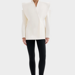 Izdignite svoj dinamični stil s Bijelim Sakoom s Izrazitim Ramena – arhitektonski komad koji se ističe minimalističkim dizajnom i impozantnom linijom. Idealno za izglede koji kombiniraju eleganciju i modernu estetiku.