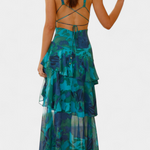 Lagana, romantična i s elegancijom koja se kreće s tobom. Haljina Valentina kombinira duboki V-izrez s lepršavim slojevima chifona koji nježno obavijaju siluetu. Njeni tonovi inspirirani dragim kamenjem dodaju dodir opuštene sofisticiranosti idealne za ljeto.